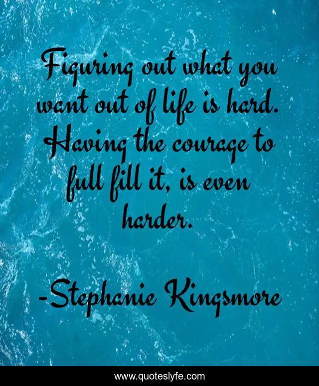 This page presents the quote "Figuring out what you want out of life is hard. Having the courage to full fill it, is even harder.". Author of this quote is Stephanie Kingsmore. This quote is about life, courage,.