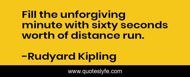 This page presents the quote "Fill the unforgiving minute with sixty seconds worth of distance run.". Author of this quote is Rudyard Kipling. .