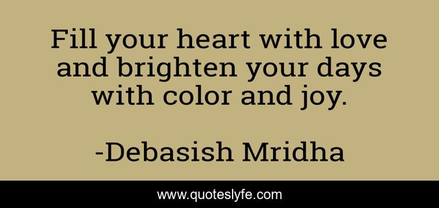 This page presents the quote "Fill your heart with love and brighten your days with color and joy.". Author of this quote is Debasish Mridha. This quote is about life, love, knowledge, inspirational, intelligence, philosophy, wisdom, quotes, affection,.