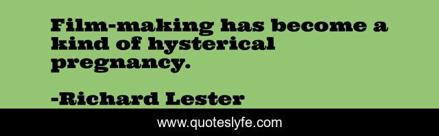 This page presents the quote "Film-making has become a kind of hysterical pregnancy.". Author of this quote is Richard Lester. This quote is about acting, theatre,.