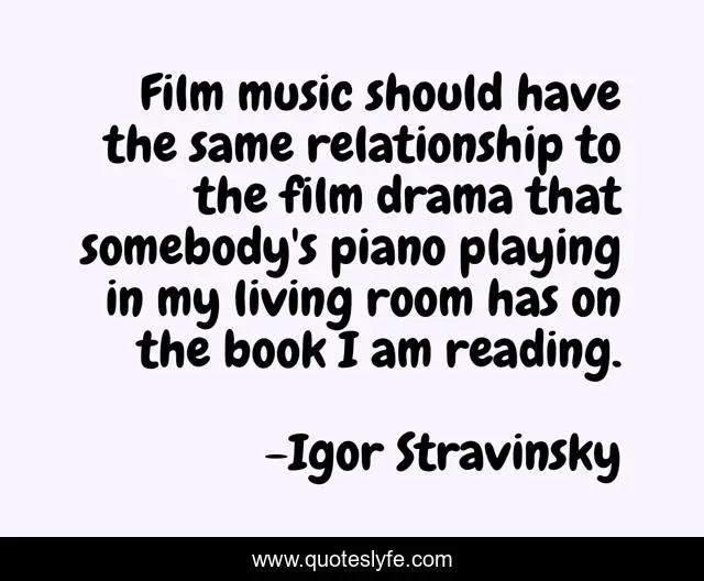 This page presents the quote "Film music should have the same relationship to the film drama that somebody's piano playing in my living room has on the book I am reading.". Author of this quote is Igor Stravinsky. This quote is about reading, relationship,.