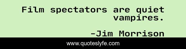 This page presents the quote "Film spectators are quiet vampires.". Author of this quote is Jim Morrison. This quote is about quiet, film, vampires,.