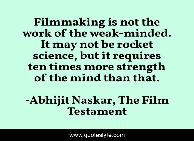 "Abhijit Naskar, The Film Testament Quotes." Quoteslyfe.com, 2025. Fri. 05 Dec. 2025. <https://www.quoteslyfe.com/quote/Filmmaking-is-not-the-work-of-the-36546>.