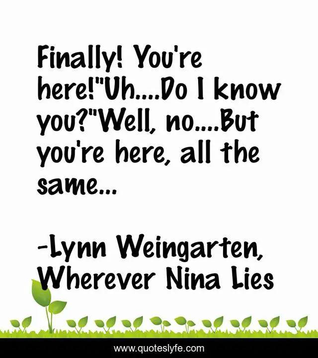 "Lynn Weingarten, Wherever Nina Lies Quotes." Quoteslyfe.com, 2025. Sat. 06 Dec. 2025. <https://www.quoteslyfe.com/quote/Finally-You-re-here-Uh-Do-I-178408>.