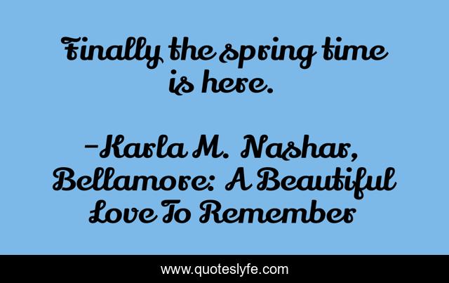 "Karla M. Nashar, Bellamore: A Beautiful Love To Remember Quotes." Quoteslyfe.com, 2025. Fri. 05 Dec. 2025. <https://www.quoteslyfe.com/quote/Finally-the-spring-time-is-here-115560>.
