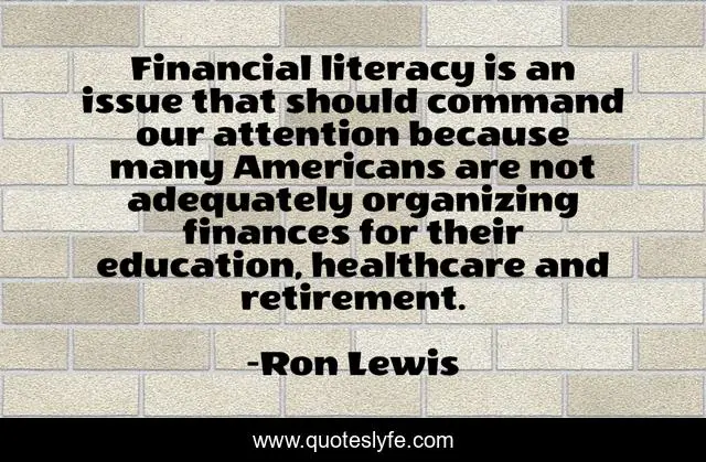 This page presents the quote "Financial literacy is an issue that should command our attention because many Americans are not adequately organizing finances for their education, healthcare and retirement.". Author of this quote is Ron Lewis. This quote is about education, financial,.