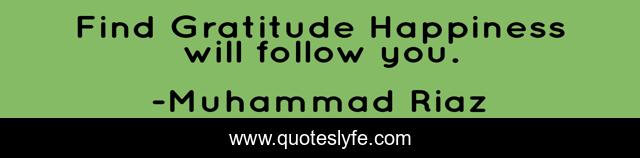 This page presents the quote "Find Gratitude Happiness will follow you.". Author of this quote is Muhammad Riaz. This quote is about gratitude, happiness,.
