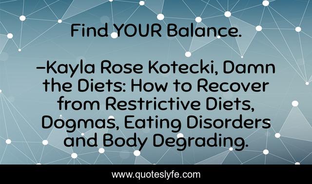 "Kayla Rose Kotecki, Damn the Diets: How to Recover from Restrictive Diets, Dogmas, Eating Disorders and Body Degrading. Quotes." Quoteslyfe.com, 2025. Tue. 09 Dec. 2025. <https://www.quoteslyfe.com/quote/Find-YOUR-Balance-230018>.