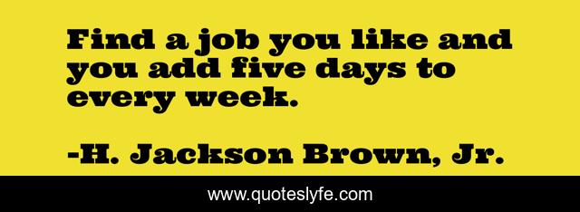 This page presents the quote "Find a job you like and you add five days to every week.". Author of this quote is H. Jackson Brown, Jr.. This quote is about week, job,.