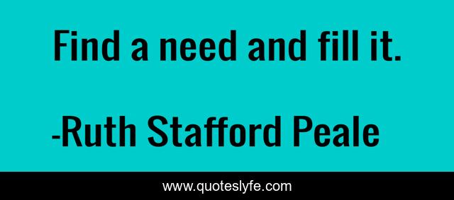 This page presents the quote "Find a need and fill it.". Author of this quote is Ruth Stafford Peale. .