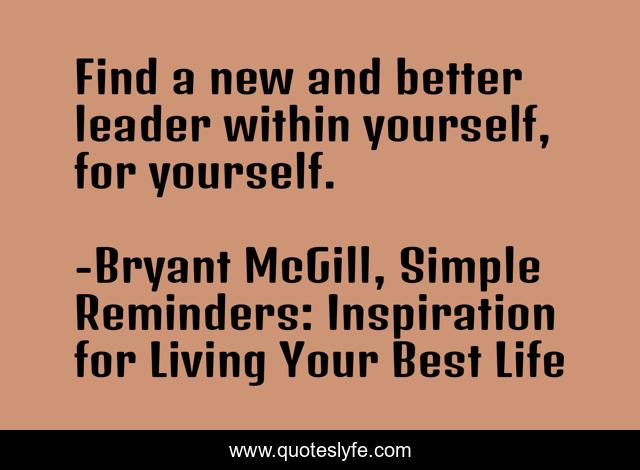 This page presents the quote "Find a new and better leader within yourself, for yourself.". Author of this quote is Bryant McGill, Simple Reminders: Inspiration for Living Your Best Life. This quote is about finding, newness, growth, leadership,.