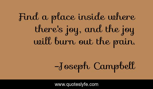 This page presents the quote "Find a place inside where there's joy, and the joy will burn out the pain.". Author of this quote is Joseph Campbell. This quote is about joy, pain, place,.