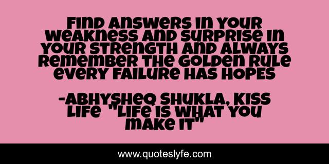 "Abhysheq Shukla, KISS Life "Life is what you make it" Quotes." Quoteslyfe.com, 2025. Fri. 05 Dec. 2025. <https://www.quoteslyfe.com/quote/Find-answers-in-your-weakness-and-surprise-81662>.