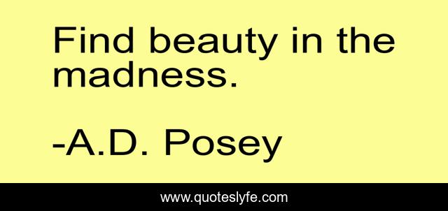 "A.D. Posey Quotes." Quoteslyfe.com, 2025. Tue. 09 Dec. 2025. <https://www.quoteslyfe.com/quote/Find-beauty-in-the-madness-61456>.