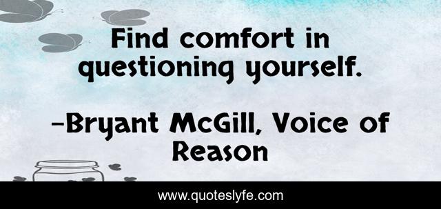 "Bryant McGill, Voice of Reason Quotes." Quoteslyfe.com, 2025. Fri. 05 Dec. 2025. <https://www.quoteslyfe.com/quote/Find-comfort-in-questioning-yourself-212411>.
