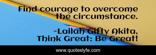 "Lailah Gifty Akita, Think Great: Be Great! Quotes." Quoteslyfe.com, 2025. Fri. 05 Dec. 2025. <https://www.quoteslyfe.com/quote/Find-courage-to-overcome-the-circumstance-91680>.