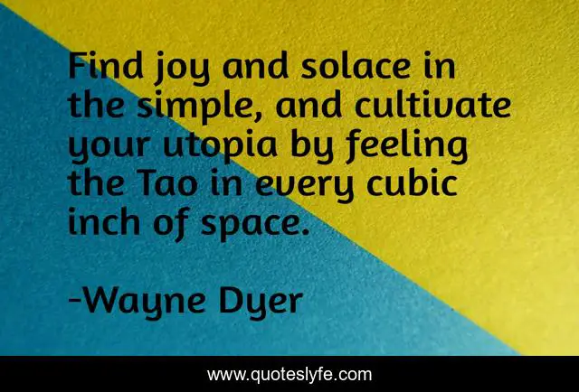 This page presents the quote "Find joy and solace in the simple, and cultivate your utopia by feeling the Tao in every cubic inch of space.". Author of this quote is Wayne Dyer. This quote is about simple, joy, utopia,.