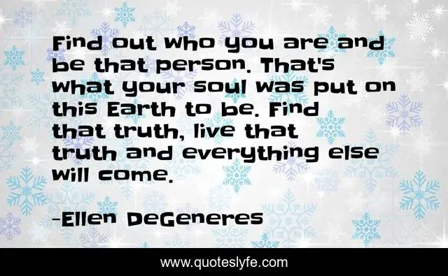 This page presents the quote "Find out who you are and be that person. That's what your soul was put on this Earth to be. Find that truth, live that truth and everything else will come.". Author of this quote is Ellen DeGeneres. This quote is about live, soul, truth,.