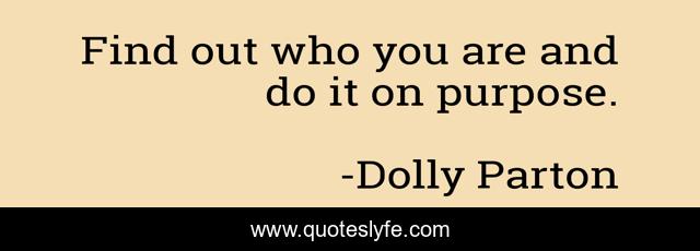 This page presents the quote "Find out who you are and do it on purpose.". Author of this quote is Dolly Parton. This quote is about be-yourself, self-awareness,.