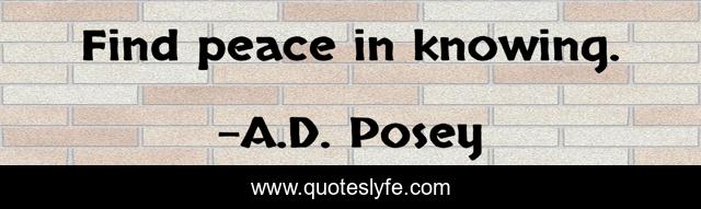 "A.D. Posey Quotes." Quoteslyfe.com, 2025. Fri. 05 Dec. 2025. <https://www.quoteslyfe.com/quote/Find-peace-in-knowing-73670>.