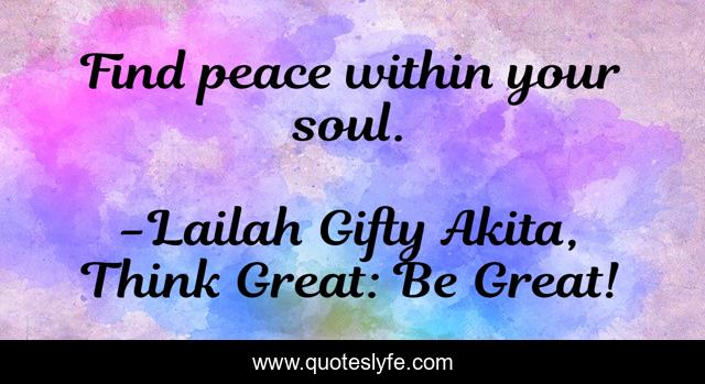 "Lailah Gifty Akita, Think Great: Be Great! Quotes." Quoteslyfe.com, 2025. Tue. 09 Dec. 2025. <https://www.quoteslyfe.com/quote/Find-peace-within-your-soul-257579>.