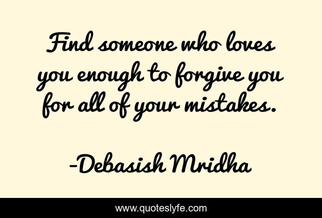 This page presents the quote "Find someone who loves you enough to forgive you for all of your mistakes.". Author of this quote is Debasish Mridha. This quote is about finding-love, philosophy, debasish-mridha, quotes, inspirational, enthusiasm, forgiveness, debasish-mridha-m-d,.