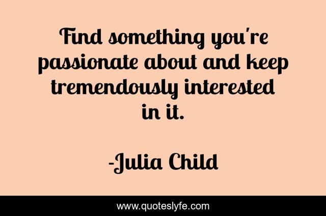 This page presents the quote "Find something you're passionate about and keep tremendously interested in it.". Author of this quote is Julia Child. .