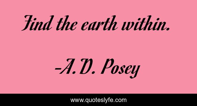 "A.D. Posey Quotes." Quoteslyfe.com, 2025. Sat. 06 Dec. 2025. <https://www.quoteslyfe.com/quote/Find-the-earth-within-150984>.