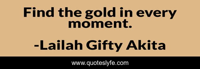 This page presents the quote "Find the gold in every moment.". Author of this quote is Lailah Gifty Akita. This quote is about life, daily-inspiration, advice, moment, inspirational, enthusiasm,.