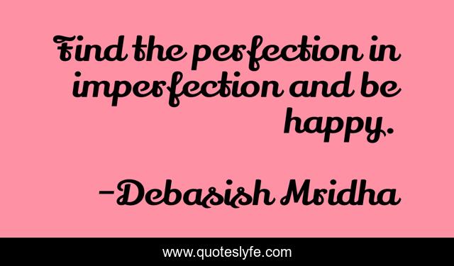 This page presents the quote "Find the perfection in imperfection and be happy.". Author of this quote is Debasish Mridha. This quote is about life, love, knowledge, inspirational, intelligence, philosophy, wisdom, quotes, affection,.