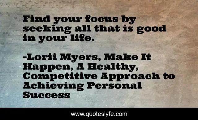 "Lorii Myers, Make It Happen, A Healthy, Competitive Approach to Achieving Personal Success Quotes." Quoteslyfe.com, 2025. Fri. 05 Dec. 2025. <https://www.quoteslyfe.com/quote/Find-your-focus-by-seeking-all-that-187314>.
