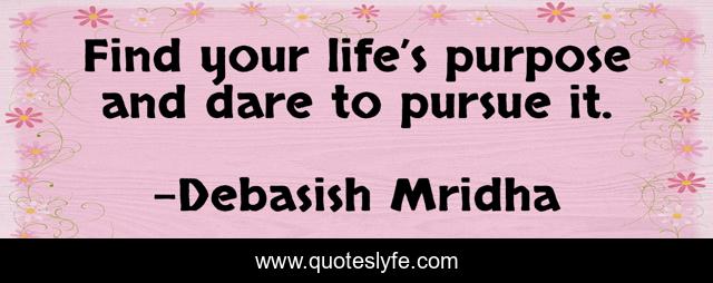 This page presents the quote "Find your life’s purpose and dare to pursue it.". Author of this quote is Debasish Mridha. This quote is about life, life-s-purpose, philosophy, debasish-mridha, quotes, inspirational, pursue-your-purpose, enthusiasm, debasish-mridha-m-d,.