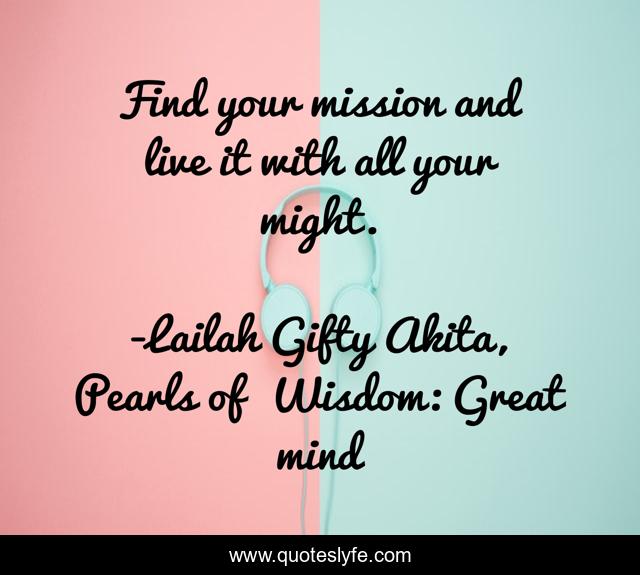"Lailah Gifty Akita, Pearls of Wisdom: Great mind Quotes." Quoteslyfe.com, 2025. Sun. 07 Dec. 2025. <https://www.quoteslyfe.com/quote/Find-your-mission-and-live-it-with-92806>.