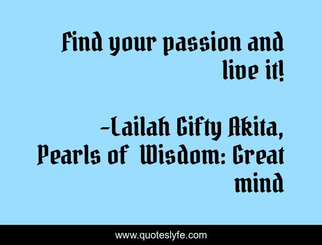 "Lailah Gifty Akita, Pearls of Wisdom: Great mind Quotes." Quoteslyfe.com, 2025. Mon. 08 Dec. 2025. <https://www.quoteslyfe.com/quote/Find-your-passion-and-live-it-98727>.