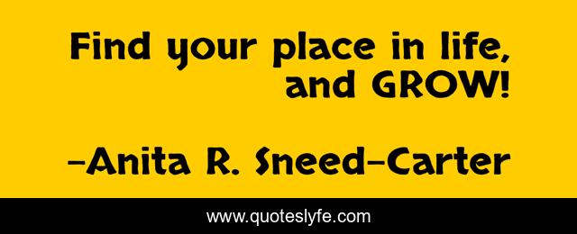 This page presents the quote "Find your place in life, and GROW!". Author of this quote is Anita R. Sneed-Carter. This quote is about life, devotional, live, inspirational, enthusiasm, jesus, grow,.