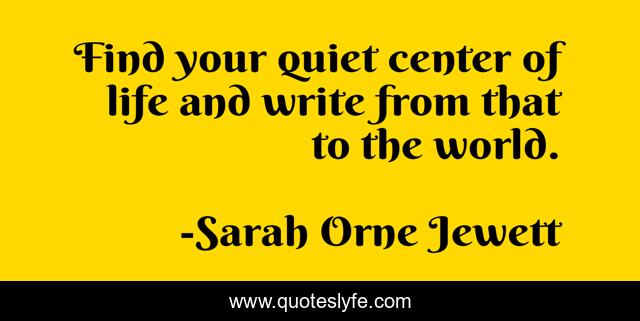 This page presents the quote "Find your quiet center of life and write from that to the world.". Author of this quote is Sarah Orne Jewett. .