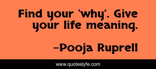 "Pooja Ruprell Quotes." Quoteslyfe.com, 2025. Mon. 08 Dec. 2025. <https://www.quoteslyfe.com/quote/Find-your-why-Give-your-life-meaning-93234>.