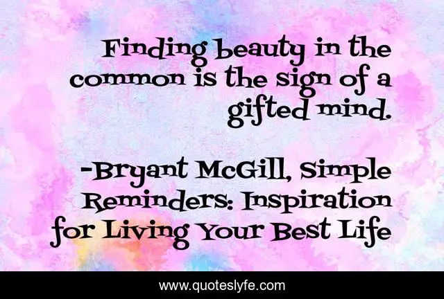 "Bryant McGill, Simple Reminders: Inspiration for Living Your Best Life Quotes." Quoteslyfe.com, 2025. Fri. 05 Dec. 2025. <https://www.quoteslyfe.com/quote/Finding-beauty-in-the-common-is-the-87725>.