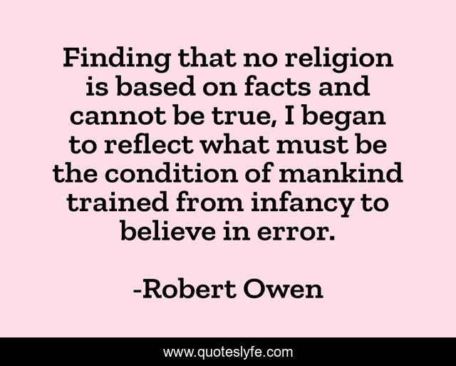 This page presents the quote "Finding that no religion is based on facts and cannot be true, I began to reflect what must be the condition of mankind trained from infancy to believe in error.". Author of this quote is Robert Owen. This quote is about facts, be true, believe,.