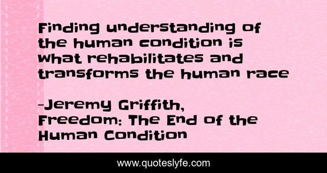 "Jeremy Griffith, Freedom: The End of the Human Condition Quotes." Quoteslyfe.com, 2025. Fri. 05 Dec. 2025. <https://www.quoteslyfe.com/quote/Finding-understanding-of-the-human-condition-is-222846>.