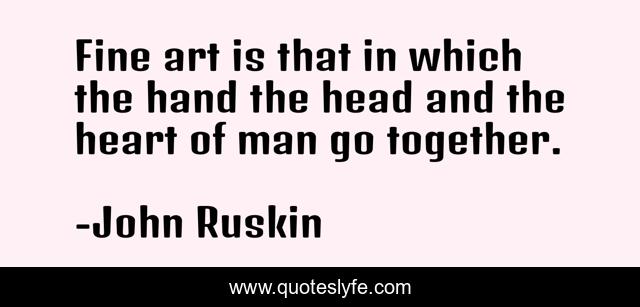 This page presents the quote "Fine art is that in which the hand the head and the heart of man go together.". Author of this quote is John Ruskin. This quote is about art, artist,.