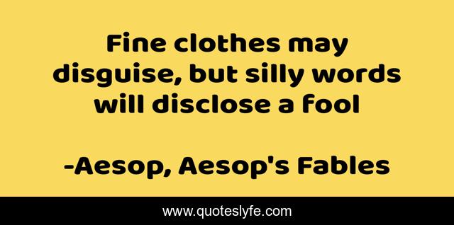 "Aesop, Aesop's Fables Quotes." Quoteslyfe.com, 2025. Mon. 08 Dec. 2025. <https://www.quoteslyfe.com/quote/Fine-clothes-may-disguise-but-silly-words-234354>.