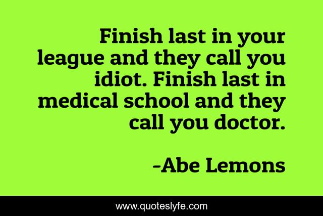 This page presents the quote "Finish last in your league and they call you idiot. Finish last in medical school and they call you doctor.". Author of this quote is Abe Lemons. This quote is about school, doctor,.