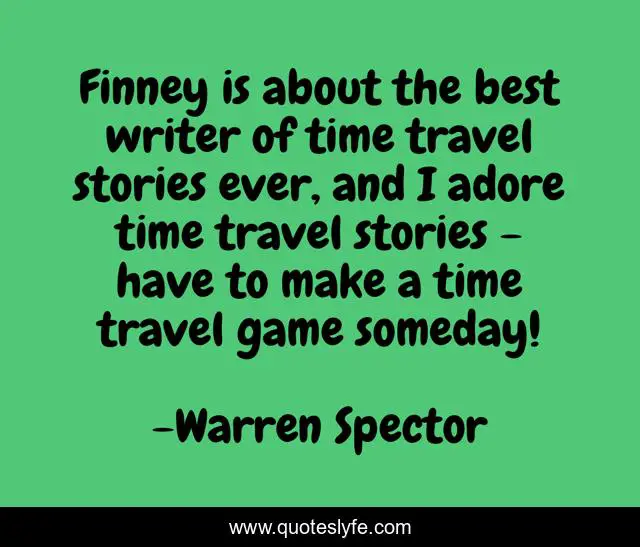 This page presents the quote "Finney is about the best writer of time travel stories ever, and I adore time travel stories - have to make a time travel game someday!". Author of this quote is Warren Spector. This quote is about game, best, time,.