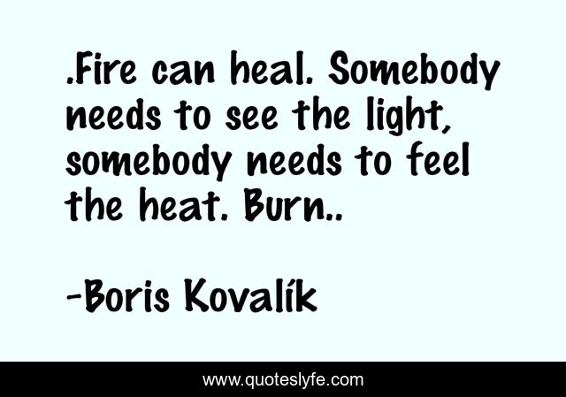 This page presents the quote ".Fire can heal. Somebody needs to see the light, somebody needs to feel the heat. Burn..". Author of this quote is Boris Kovalík. This quote is about peace-of-mind, enthusiasm, life, inspirational,.