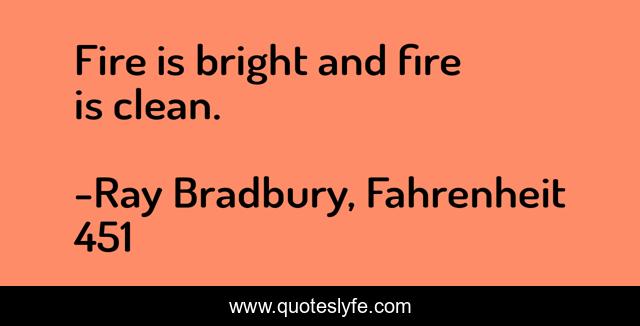 "Ray Bradbury, Fahrenheit 451 Quotes." Quoteslyfe.com, 2025. Tue. 09 Dec. 2025. <https://www.quoteslyfe.com/quote/Fire-is-bright-and-fire-is-clean-221973>.