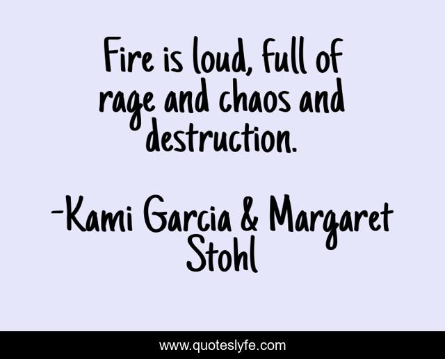 "Kami Garcia & Margaret Stohl Quotes." Quoteslyfe.com, 2025. Sun. 07 Dec. 2025. <https://www.quoteslyfe.com/quote/Fire-is-loud-full-of-rage-and-29084>.