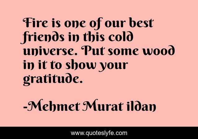 This page presents the quote "Fire is one of our best friends in this cold universe. Put some wood in it to show your gratitude.". Author of this quote is Mehmet Murat ildan. .