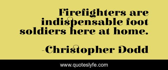 This page presents the quote "Firefighters are indispensable foot soldiers here at home.". Author of this quote is Christopher Dodd. This quote is about soldiers, firefighters, here,.