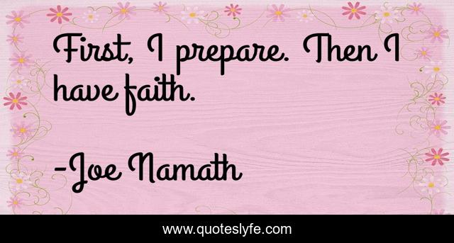 This page presents the quote "First, I prepare. Then I have faith.". Author of this quote is Joe Namath. This quote is about then, prepare, first,.